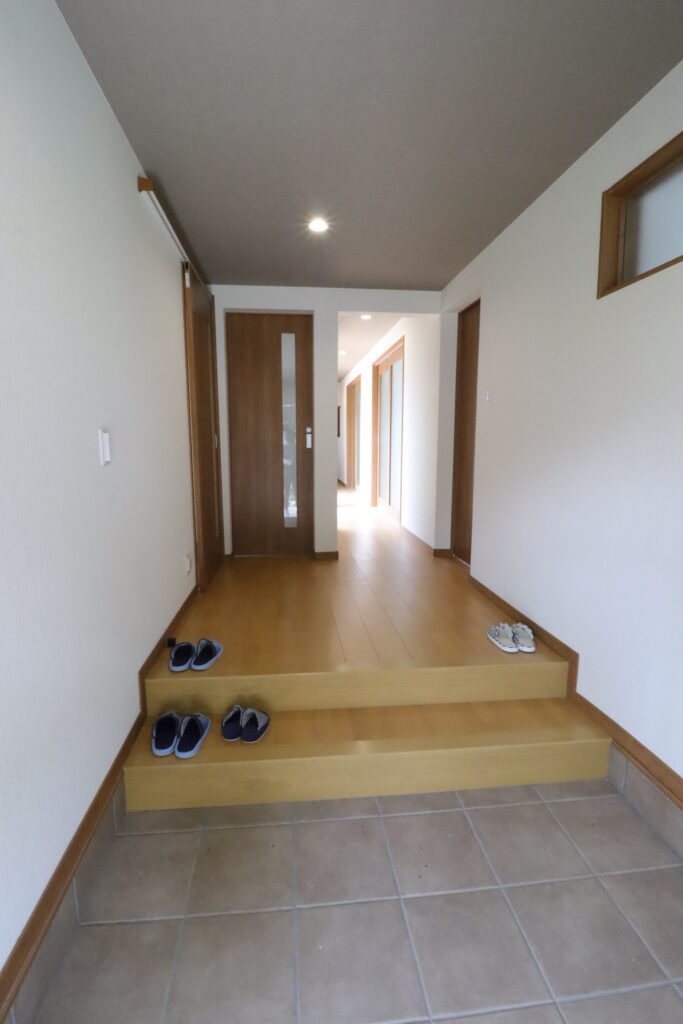 玄関ホール段差を解消して明るく広々とした空間。