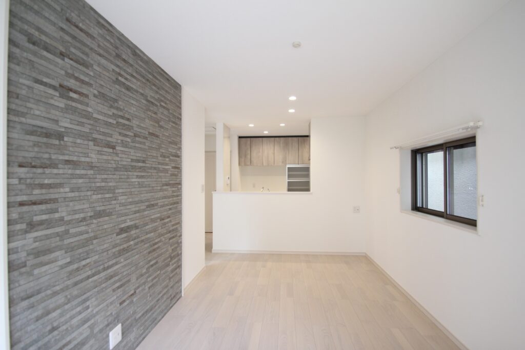 - 壁は明るいグレージュを基調に、落ち着いた雰囲気に