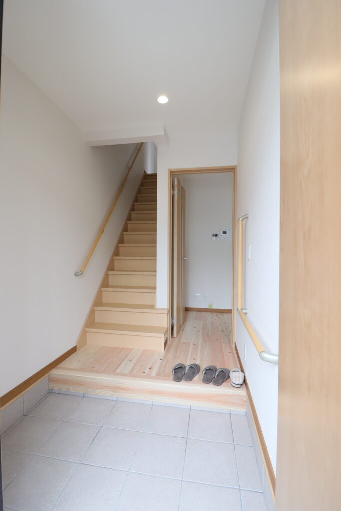 - 玄関ドア・サッシ断熱変更・土間タイル・ホール階段取替え。